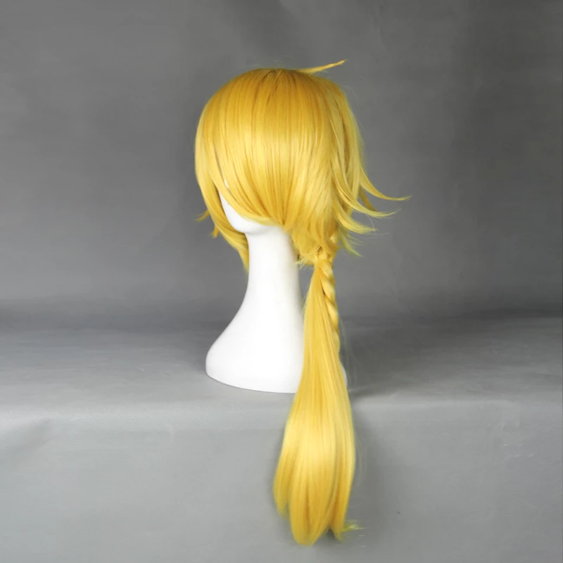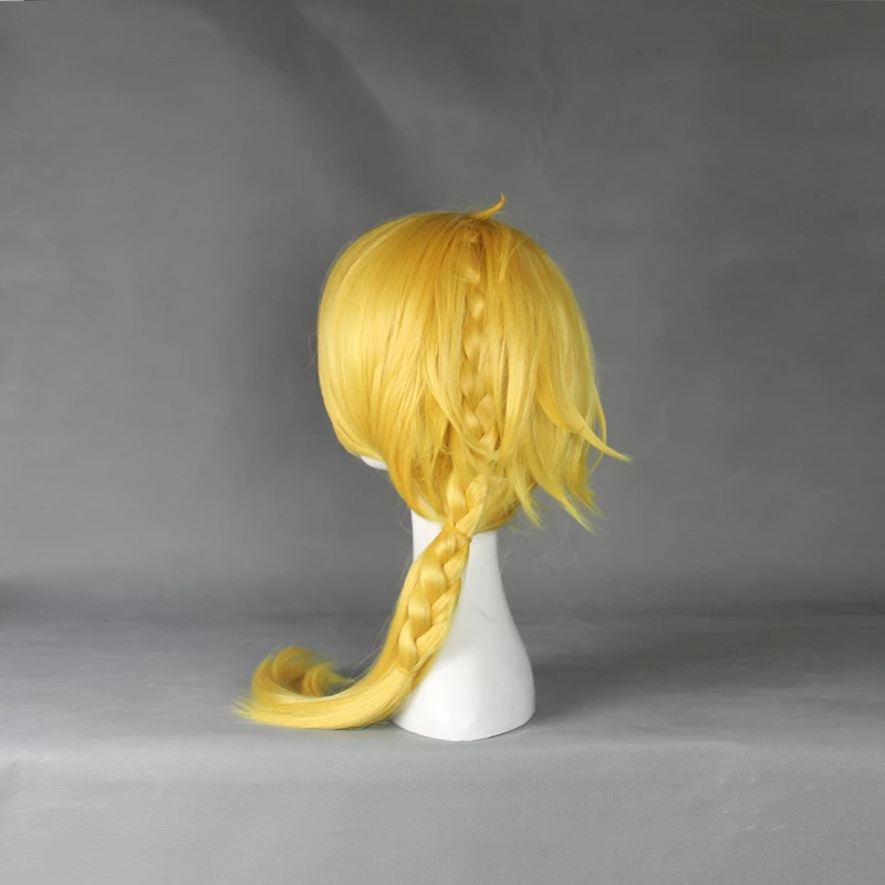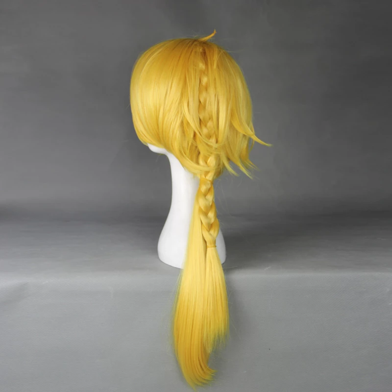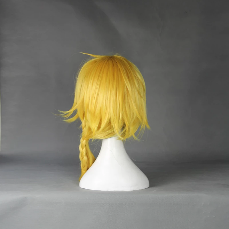 All of our cosplay costume wigs are made from superior quality material and also made by our experienced hairstylists to imitate the authentic human hair. High quality guarantee! Utilizing its vivid color, this specific Gold 50cm Touken Ranbu Shishiou Cosplay Wig features the uniqueness of the character and even gives some extra flavor towards the overall look!